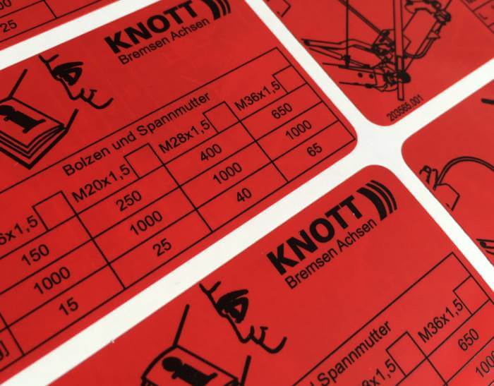 They are used as typological and labeling labels, warning signs, advertising stickers, shipping and transport labels for a wide range of products of the machine industry: